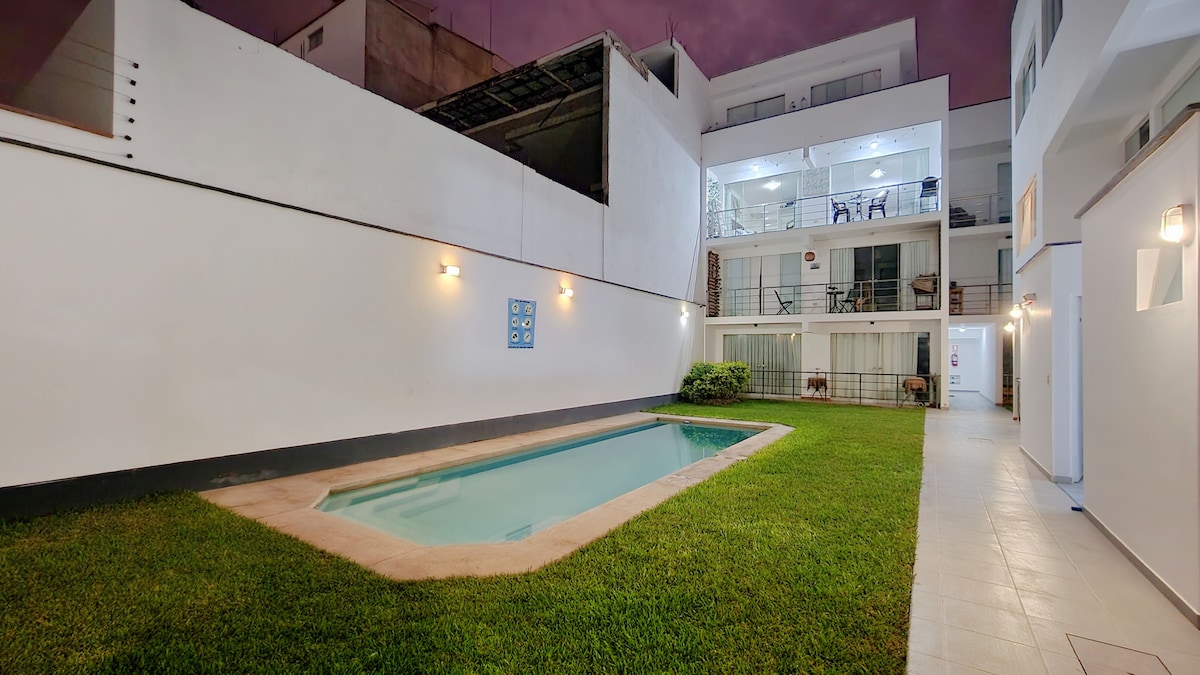Entire Mini Apartment, SEA VIEW, furnished, with internet, cable TV, Netflix with the comfort and privacy of your house in front of Pulpos beach and 3 blocks from El Silencio. Built within a closed condominium with 24/7 surveillance designed for single couples, with family or friends who like to enjoy a quiet day at the beach, fishing or practicing bodyboarding or surfing, sleeping with the sound of the sea after a night of relaxation and grill in the small south or who have remote work.