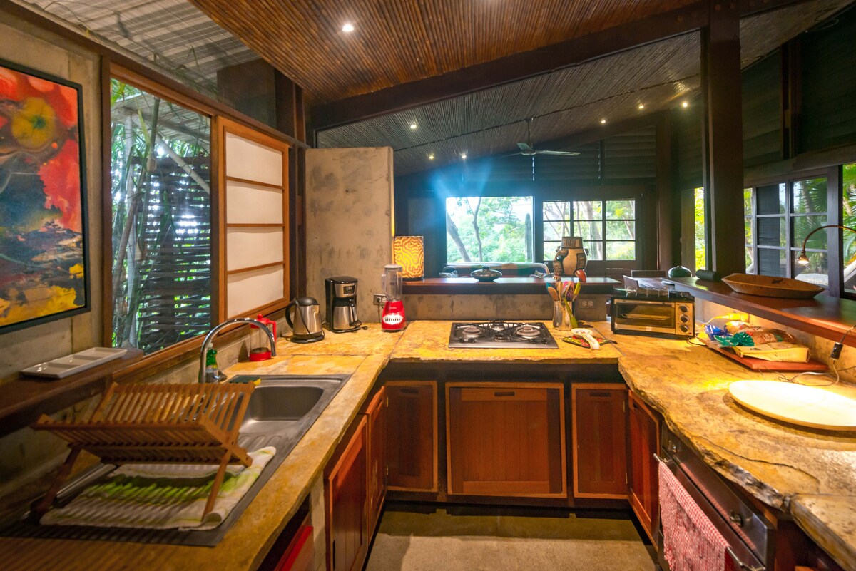 Casa Culebra: Rustic charm meets modern comfort in this single-level Airbnb nestled within Balcones de Majagual. Enjoy breathtaking ocean and jungle views from this open-air, private sanctuary. With 2 King bedrooms, solar hot water en-suites, and a fully equipped kitchen, it's perfect for a getaway. Cool off in the shared, newly renovated pool just steps away. Located 20 minutes from town and minutes from the beach. Accessible via 4x4 vehicles. High-speed 200mbps fibre optic internet available!