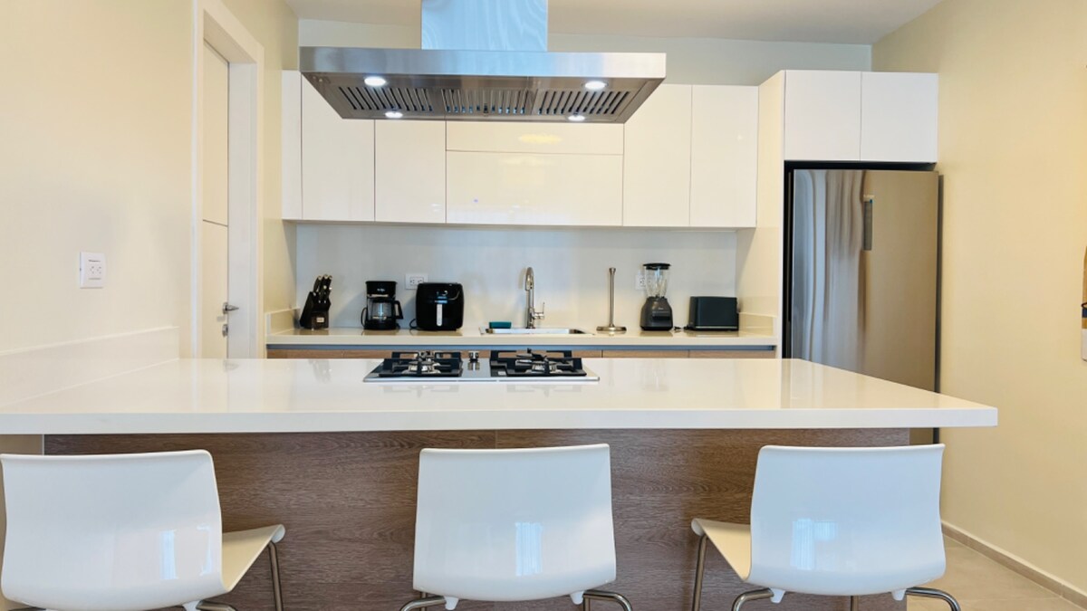 Üdvözlünk a békés karibi kiruccanásodon! Ez a stílusos és kényelmes lakás a Playa Nueva Romana Las Olas negyedében tökéletes kiruccanás a családoknak, golfozóknak és a pihenésre vágyóknak. Legfeljebb 6 vendég elszállásolására tervezték, és a kényelem, a luxus és a praktikum ideális kombinációját kínálja – mindezt egy biztonságos, üdülőhelyi stílusú közösségben. Akár családi nyaralásra, akár golfkiruccanásra, akár nyugodt tengerparti kiruccanásra vágysz, ez a hely mindent megad, amire szükséged lehet egy felejthetetlen szálláshoz.