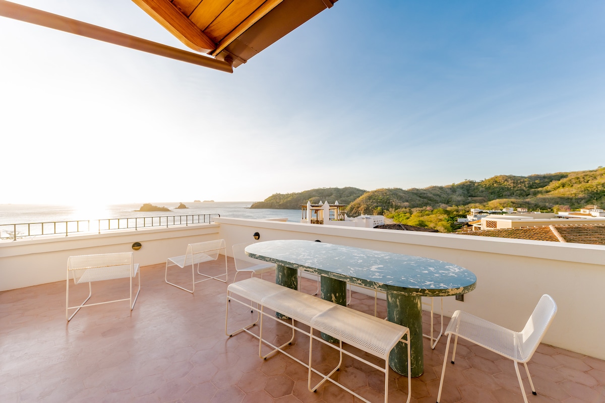 Újonnan felújított. Szállj meg egy gyönyörű villában saját végtelenített medencével, amely egy biztonságos közösségben található, közel Costa Rica legszebb strandjaihoz. A 2025-ben teljesen felújított szálláshely modern kényelmet és lélegzetelállító kilátást kínál. • 2 légkondicionált hálószoba saját fürdőszobával • Szabad tér teljes konyhával és hangulatos nappalival • Kültéri étkező a látványos naplementéhez • Wi-Fi, riasztó és bekerített parkoló