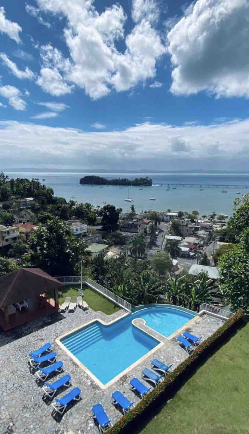 Szép 2 hálószobás lakás, kilátás a Samana-öbölre, medence és parkoló