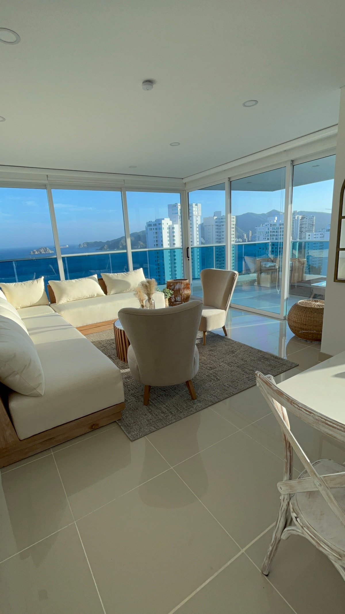 Éld át a Rodadero Sur élményét egy kőhajításnyira a strandtól! Kilátás az óceánra és a Sierra Nevadára, ideális a pihenéshez. Száloptikás Wi-Fi és teljesen felszerelt lakás. 🌴 Tartalmaz 4 széket és egy hordozható hűtőszekrényt a strandra. • Minimarket az első emeleten. 📍 Csendes lakóövezet, 14 percre a repülőtértől. ✨ Ideális családoknak vagy pároknak, akik kényelmet és jó elhelyezkedést keresnek. 🌴 Santa Martában meleg az éghajlat, ezért nincs vízmelegítő; a zuhany vízének hőmérséklete szobahőmérsékletű.