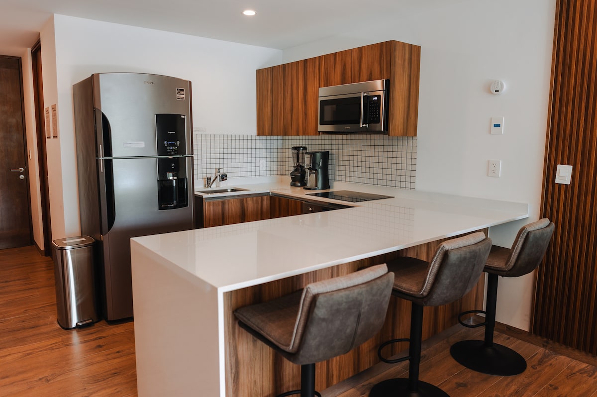 Unwind at this stunning, modern beachside condo. The apartment is warmly furnished and is equipped with all the amenities you need to make your stay comfortable. Enjoy the spectacular Caribbean sea views from the rooftop infinity pool. Here you'll be in the heart of Playa del Carmen; the condo is three minutes from 5th Ave., where you'll find a large variety of local bars, restaurants, shops, and more. Parque Fundadores, ADO bus station, the beach, and the ferry dock are only three blocks away.