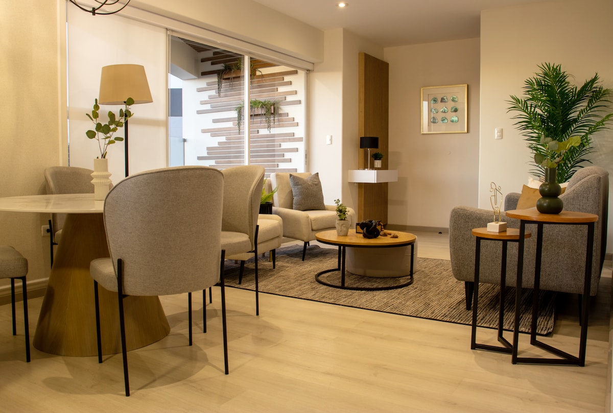 Élvezd a tartózkodásodat a város szívében egy modern és teljesen felszerelt lakásban! A történelmi központban található, mindössze 8 perc sétára a Plaza de Armas-tól, éttermek, bárok és üzletek között. Saját terasszal rendelkezik grillezővel és éjszakai világítással a hangulatos légkörért. 🔐 Önálló bejutás intelligens zárral 📍 Központi, biztonságos és csendes helyen Száloptikás 📶 Wi-Fi, ideális távmunkához 📺 Okostévé Netflix, Prime, HBO stb. hozzáféréssel.