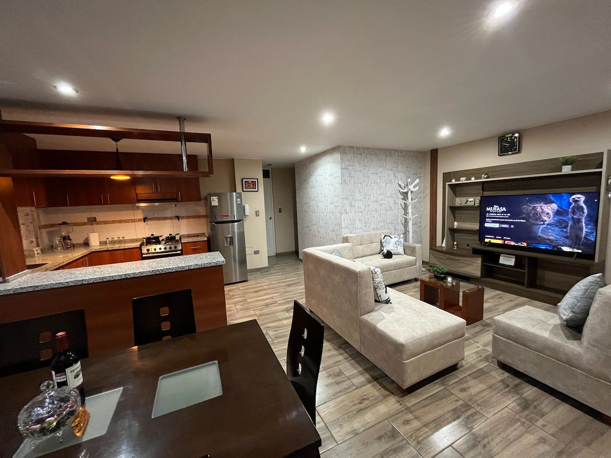 Élvezd a modern épület 4. emeleti első osztályú lakását, amely a legmodernebb főzárral rendelkezik, és Arequipa csendes részén található. Két kényelmes és hangulatos hálószoba saját fürdőszobával, amerikai stílusú konyha-étkező és egy nagy közös grillterület az emeleten Wifi és TV-szolgáltatások streamingcsatornákkal és filmekkel Háziállatok, bulik és összejövetelek nem engedélyezettek Legfeljebb 4 személy