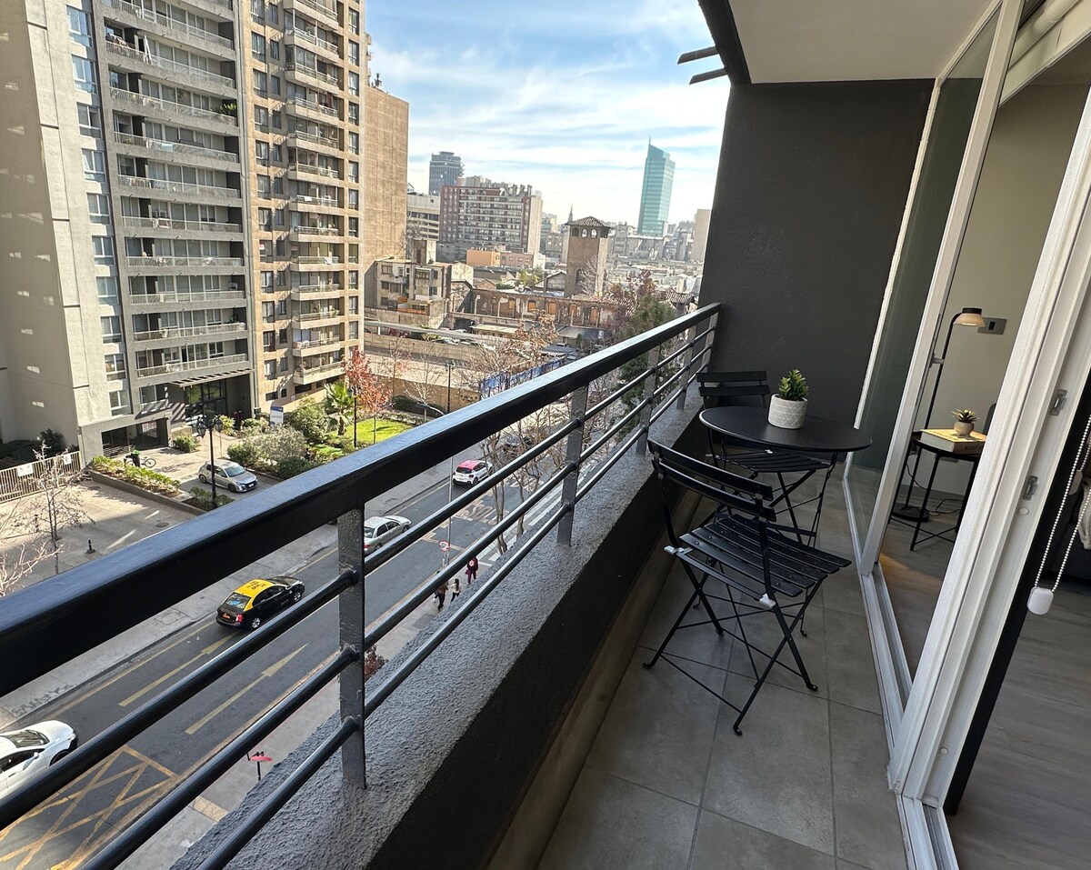 Modern és hangulatos lakás légkondicionálóval Santiago szívében. Néhány lépésre a metrótól és a történelmi központtól, múzeumokkal, piacokkal és éttermekkel körülvéve. King méretű ágy, felszerelt konyha, erkély és gyors Wi-Fi, ideális utazásokhoz vagy hosszú távú foglalásokhoz. Biztonságos épület éjjel-nappali portással. Személyre szabott figyelem, rugalmas érkezés és helyi ajánlások, hogy a helyiek szemével fedezd fel a várost, kényelmesen és nyugodtan.