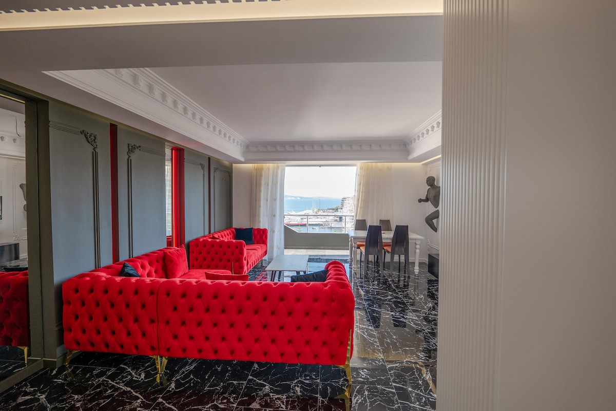 Beachfront luxury apartment located in the heart of Saranda ,Albania. With its central location, you'll have easy access to all the amenities you need for a memorable vacation, including restaurants, cafes, and shops. The apartment is beautifully designed and fully equipped with everything you need to make yourself at home. You'll find a comfortable living room, a fully equipped kitchen, a relaxing bathroom and a spacious balcony where you can soak up the stunning views of the sea and the city.