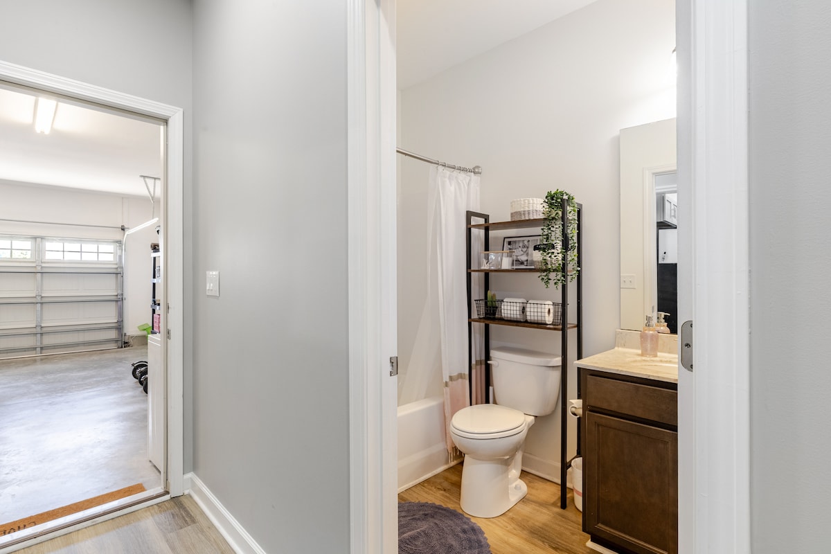 This guest suite consists of one bedroom (King bed) and a full bath. The private entrance is located on the front porch and the space is closed off from rest of the home. Space does not include a living room or kitchen. but there is a small refrigerator, microwave, coffee-maker, comfortable sitting space, and a large porch to relax. There is also an air purifier in the room- with HEPA filtration, removing 99.9 of all particles in the air. The space is the size of an average hotel room.