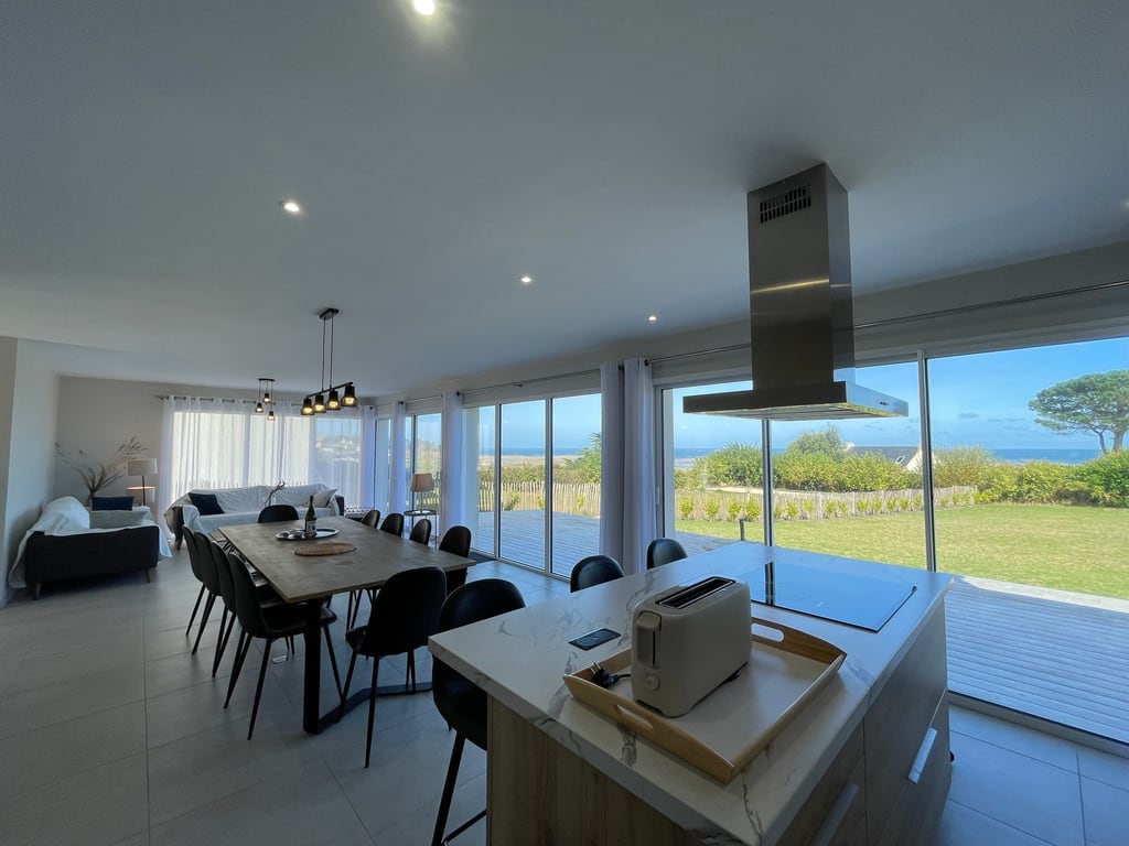 Kortárs ház, kivételes és egyedi kilátás a tengerre, Port Blanc szigeteire, a Pellinec-öbölre, a Perros Guirec melletti 7 szigetre. Buguéles kis kikötőjének közelében található, néhány perc sétára az első strandoktól és 2,5 km-re Penvenan falutól, az összes üzletével, piacával és szupermarketével. A ház egy nagy, 50m2-es nappaliból, 3 hálószobából, 3 fürdőszobából, 2 WC-ből, 3 teraszból és egy jacuzziból áll. Háziállatok nem engedélyezettek.