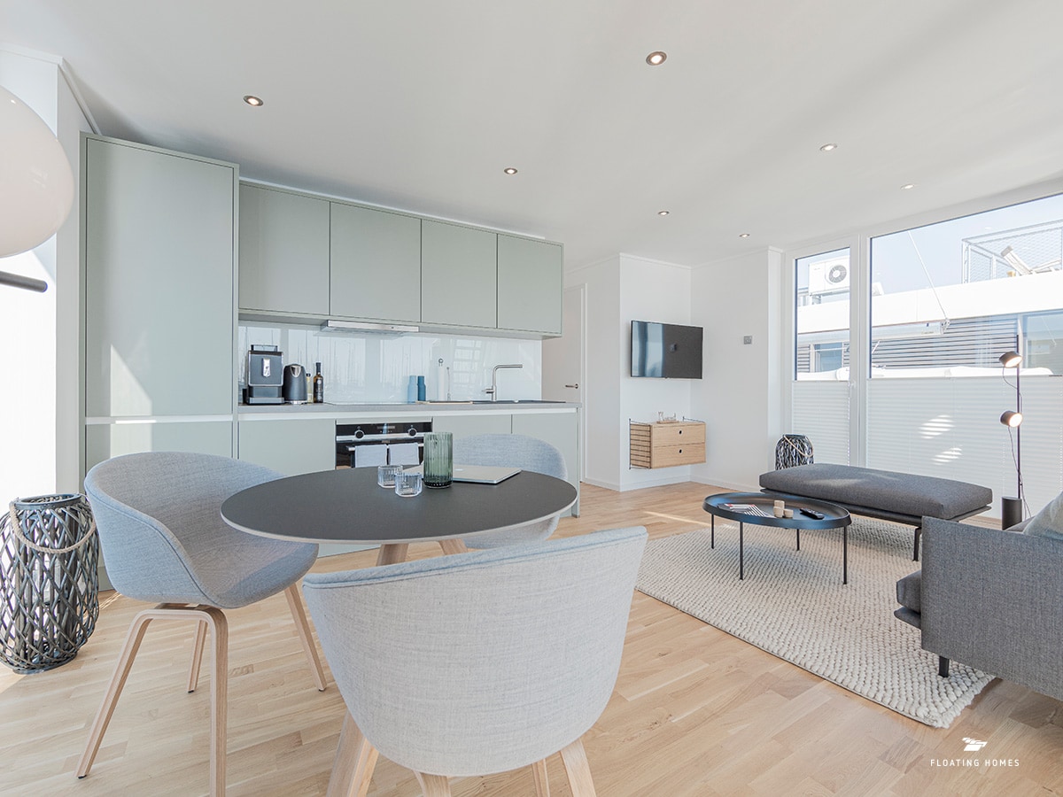 Exklusives Hausboot in fantastischer Lage. Große Panoramafenster durchfluten das Feriendomizil mit natürlichem Tageslicht. Sie haben einen einzigartigen Blick auf sie Ostsee. Auf der Terrasse und dem begehbaren Skydeck können sie fantastische Stunden und Sonnenuntergänge erleben . Eine Fußbodenheizung ,sowie eine private Sauna garantieren auch in Wintermonaten ein angenehmes Wohlgefühl. Das Hausboot ist mit Designermöbeln ausgestattet und bietet seinen Gästen insgesamt sehr viel Komfort.