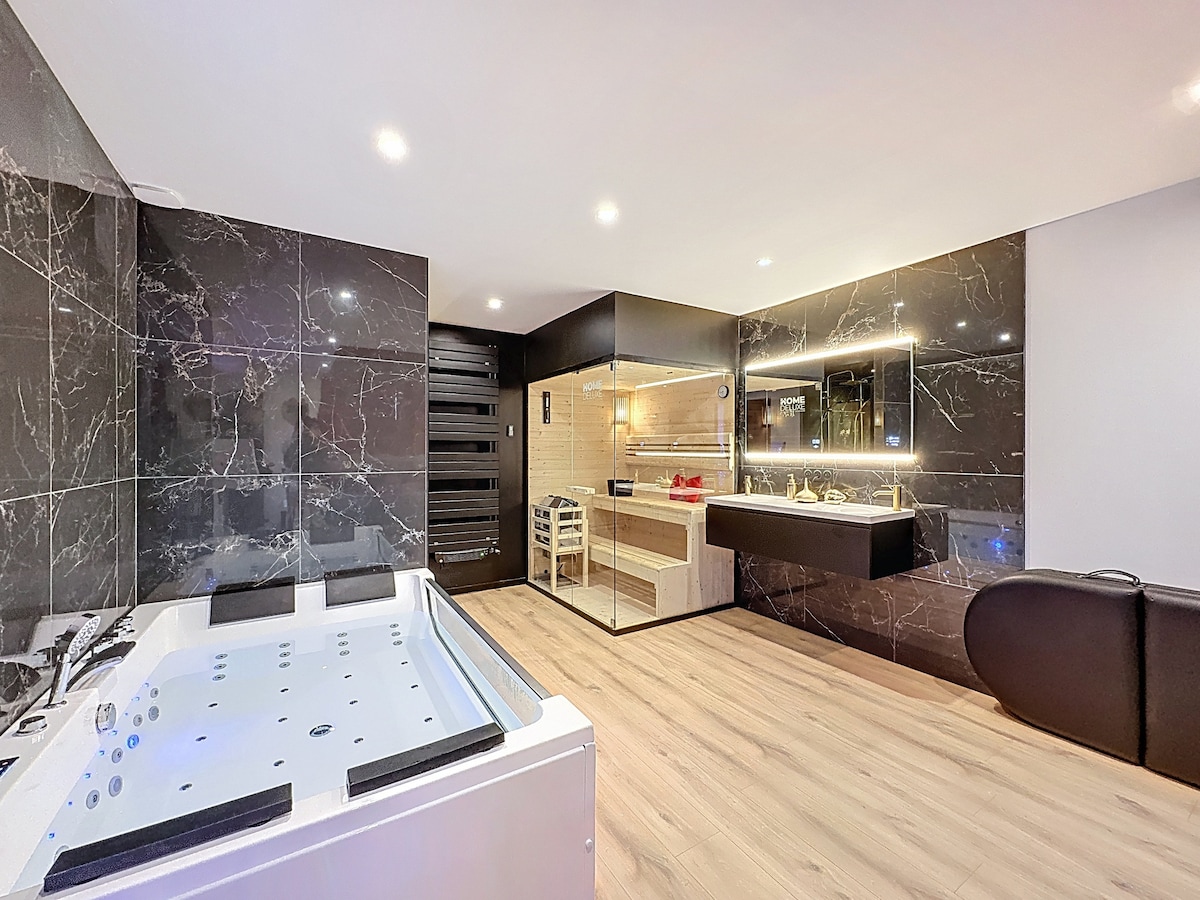 A La Grange Romantique csúcsminőségű kényelmi szolgáltatásokkal rendelkezik, amelyek a pihenés, a bűnrészesség és a jóllét pillanatát kínálják. Találsz egy relaxációs gyógyfürdőt, egy hagyományos szaunát és egy lakóövezeti hálót, ahol egy súlytalan pillanatot élvezhetsz. (privát hozzáférés) Miután megőrizte az istálló eredeti keretét, a mennyezet magassága nem haladja meg az 1m82-et a szoba közepén, ezért megtartjuk az épület báját.