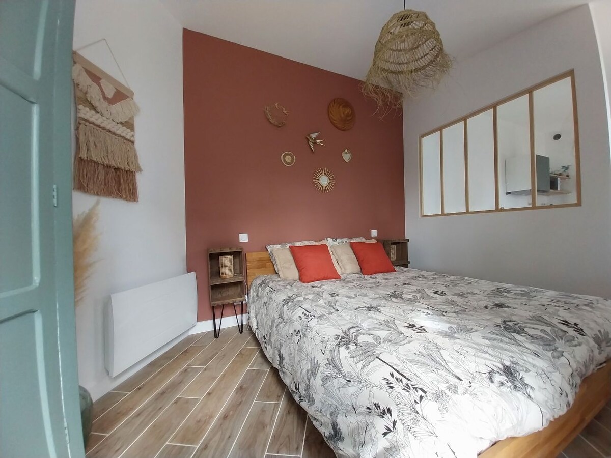 Gyönyörű, 2021-ben felújított bővítmény, amelyet a tulajdonosok családi otthona támogat. A kisház a földszinten található 1 teljesen felszerelt konyha, 1 nappali és 1 zuhanyzó ( zuhanyzó, vécé, mosógép). Az emeleten 1 kis hálószoba 1 db 140/190-es ággyal és egy hálószoba egy félemeleten, 1 fűtéssel, amely 140/190-es pótágyzá alakul át. Kis kilátás a tengerre az emeletről. Zárt és teljesen felszerelt saját kert (nyugágyak, kerti bútorok); A strand 1 km800 (15 perc séta).