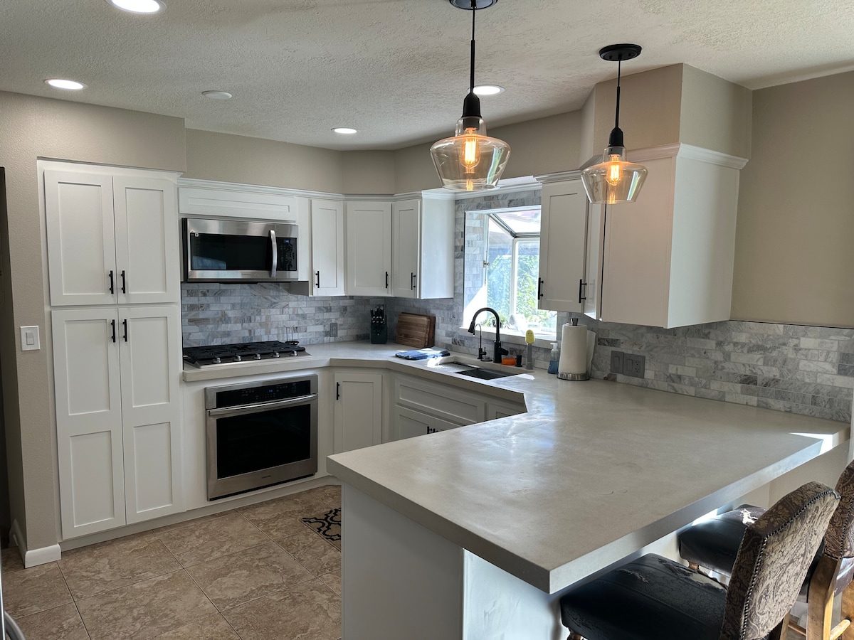 Farmhouse themed home-gather chicken eggs with your family! Központi elhelyezkedésű otthon 3 percre olyan éttermektől, mint az Olive Garden és a Red Robin, 3 percre az olyan vásárlástól, mint a Costco, a bevásárlóközpont és a Walmart. Nagy, teljesen elkerített udvar sok árnyékkal, nyáron pedig megemelt kert! Élvezd az étkezést a csodálatos konyhában és a külön étkezőben, vagy menj ki a piknikasztalhoz. Játékszerkezet, csúszda és hinta árnyékban! A felhajtón 4 SUV vagy egy nagy lakóautó és 2 autó fér el. Imádjuk ezt az otthont!