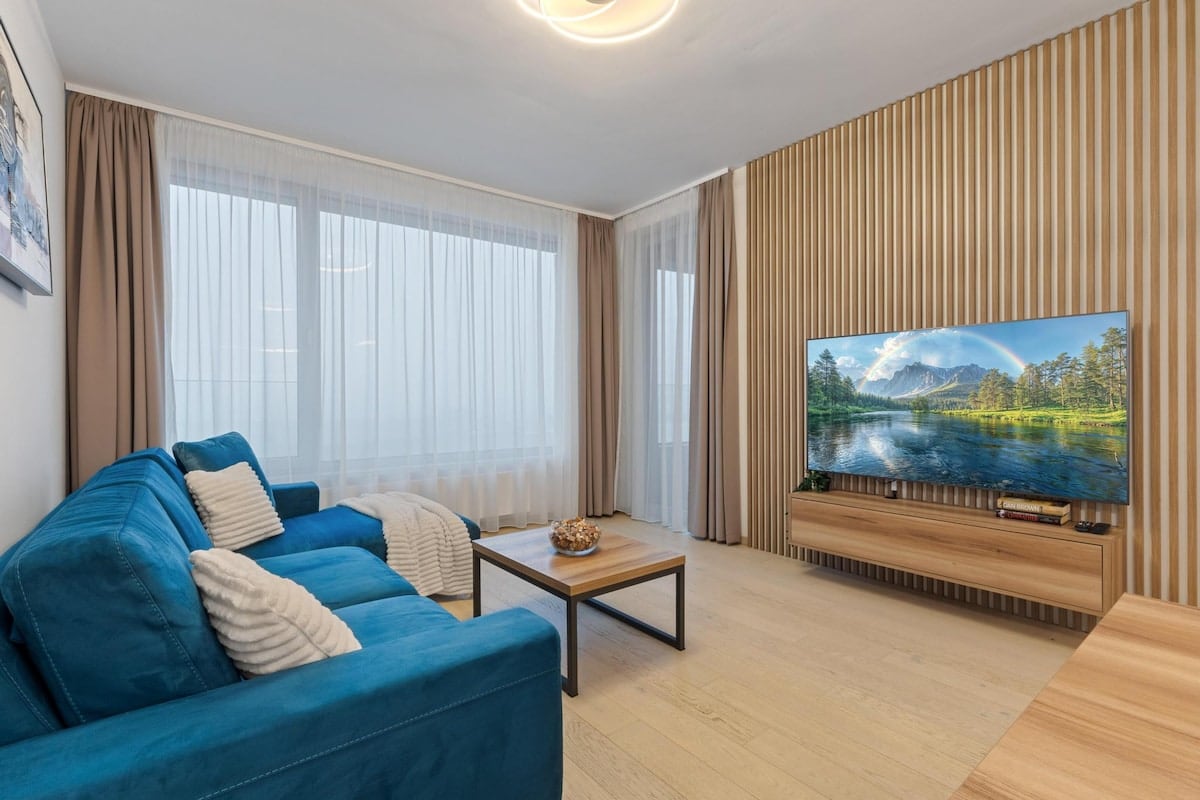 Zaha Hadid Sky Park rezidjének 13. emeletén található, ahonnan panorámás kilátás nyílik Pozsonyra a belvárosba, így beleszeretsz a városba. A reggeli kávédat a lakás teraszán fogyaszthatod el, vagy élvezheted a kilátást a kilátóból 120 méteren. A Duna sétány mellett található két bevásárlóközpont, mindössze 10 perc sétára a történelmi központtól tökéletes kiindulópont a belváros felfedezője számára.