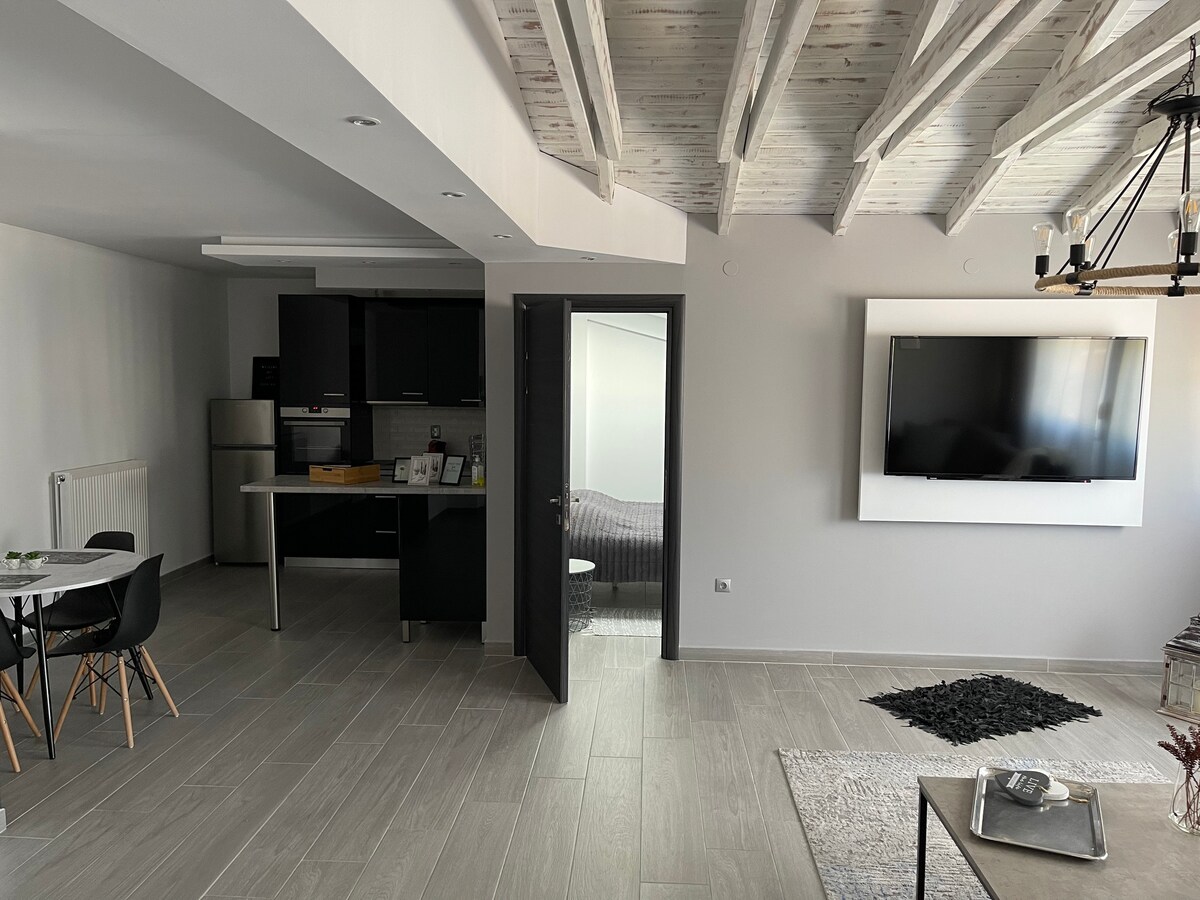 Pihenj, és tapasztald meg a vidéki életet egy stílusos házban, amelyet mezők vesznek körül, és élvezd az Olymposzra nyíló zavartalan kilátást. Fedezd fel a közeli érdekes helyeket, legyenek azok természeti, történelmi vagy kulturális jellegűek, vagy pihenj a falu térén a hatalmas platánfa alatt, és élvezd az egyes pillanatokat, miközben a harangtorony az órát ütögeti a háttérben. Változásra van szükséged? Csak öt perces autóútra Kozanitól. Látogass el egy helyre, ahol az évszakok még mindig különbözőek, anélkül, hogy elszigeteltnek éreznéd magad, vagy feláldoznád a kényelmet.