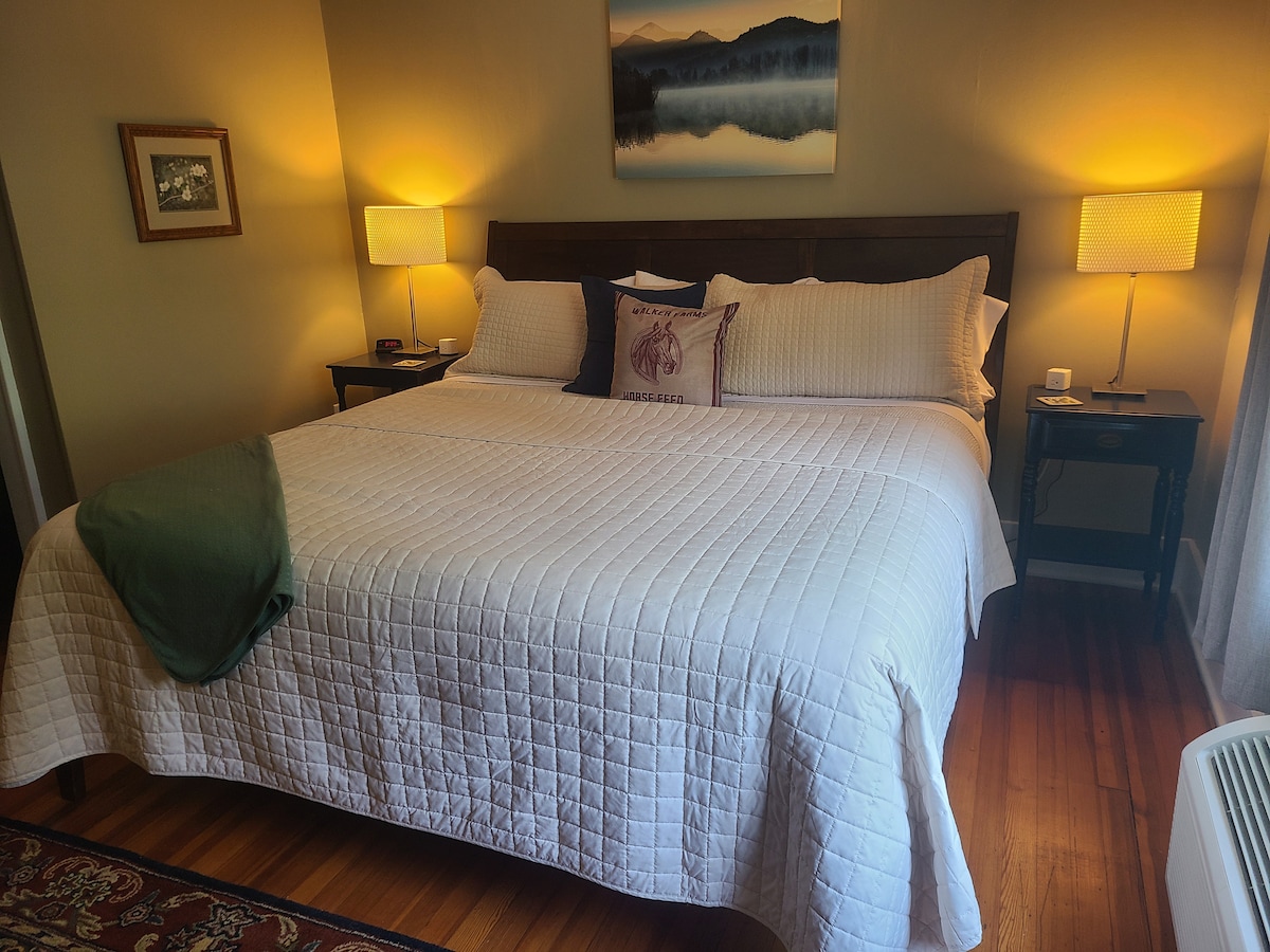 Greetings! With a picturesque view just outside your door, the Point of View is a perfect retreat. Our bunk room sleeps up to four in individual sleeping compartments. Although this rooms sleeps up to four people in curtained-off nooks, the room is only rented to one party at a time. Light breakfast, coffee and tea provided in-room. About price: Nightly rate is for 2 guests. Each add'l guest is $19/night. Cover-19 Note: Sadly, we no longer provide a hot breakfast in the main house.