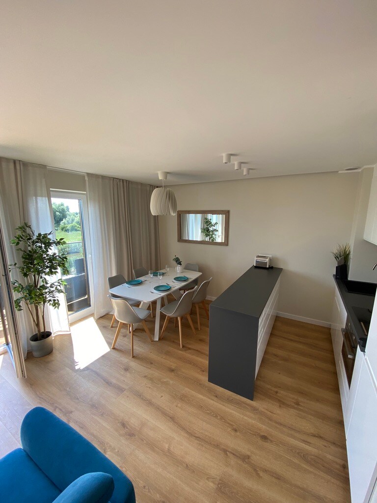 Our spacious and comfortably furnished apartment RUMBA offers you relaxation, tranquility on the endless Baltic Sea beaches of the island of Sobieszewo and at the same time the marvelous atmosphere of the Old Town of Gdansk only 15km away. Enjoy breakfast on the terrace with a view across the canal to the island's fields, walk through the pine forest to the natural and wide beach, visit the bird sanctuary, the Island of grey seals or cycle around Sobieszewo along new cycle paths.