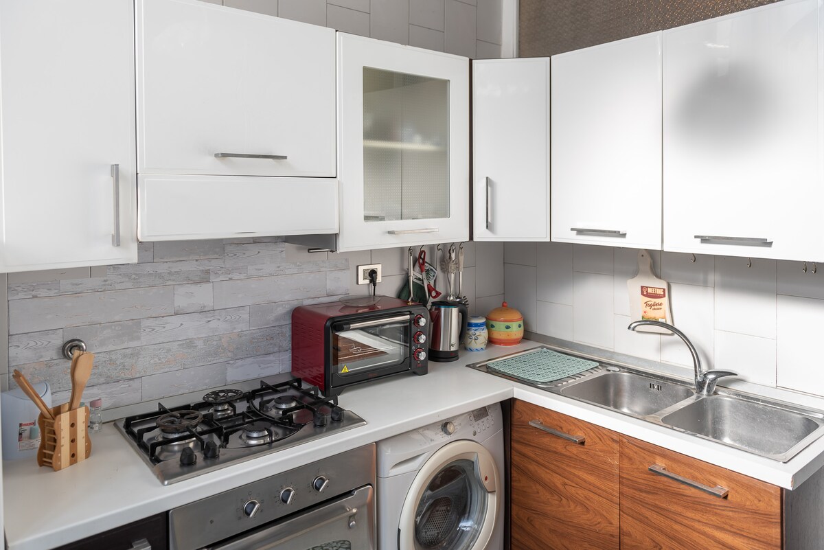 Con questo alloggio in centro, Pompei sarete vicino a tutto. Benvenuti a casa vacanze Stella Marina la struttura è da poco rinnovata al centro di Pompei, 250 mt. dal Santuario, 700 mt. da una entrata degli scavi archeologici 3 minuti a pedi dalla stazione ferroviaria e 5 minuti dalla stazione circumvesuviana.Composta da una camera da letto matrimoniale salone con divano letto matrimoniale, letto singolo da aggiungere,cucina completamente attrezzata, bagno,ampio corridoio, balcone.