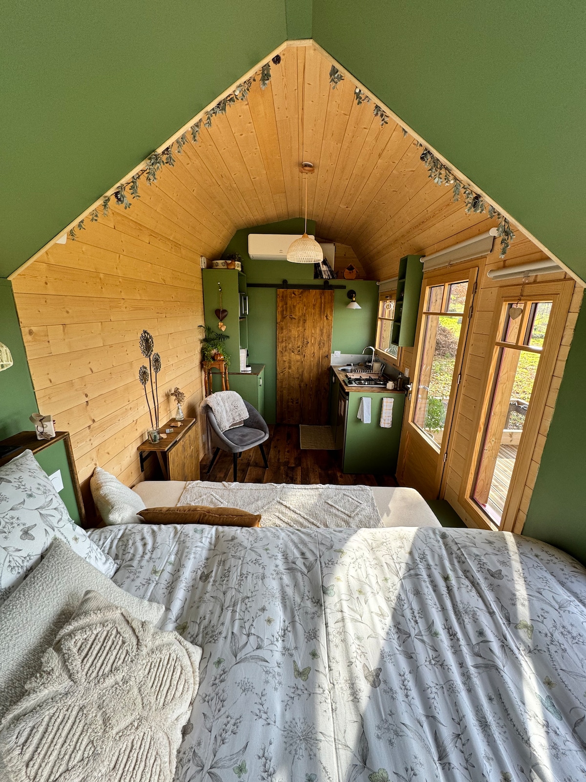 Egy igazi francia miniház, amely az észak-amerikai inspirációra utal. Csendes, nagy tölgyfák alatt, kilátással a szőlőhegyre és a naplementére. Egy kis nyugalomra vágysz, vagy egy kis időt szeretnél kettesben tölteni? Az alapok, wifi nélkül, de minden kényelemmel, csak miniatűrben. A miniházat legfeljebb 2 főnek lehet kibérelni, beleértve a gyermekeket is. Nagyszerű ajánlat a barátainkkal, a Mia Brunch-tal együttműködve Bergerac-ban! (A részletekért vedd fel velünk a kapcsolatot)