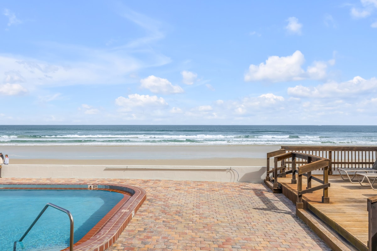 Enjoy our Beautiful new Open Pool. Stay in this oceanfront condo just steps from the Daytona Beach Boardwalk, restaurants, clubs, and concert venues. Enjoy stunning ocean views from your private balcony* and direct beach access from the newly reopened pool. Relax in comfort with a king-size bed, sofa bed, and a fully equipped kitchen, Plus, enjoy a late 11 AM checkout for extra convenience. Book now for the ultimate beachfront escape.