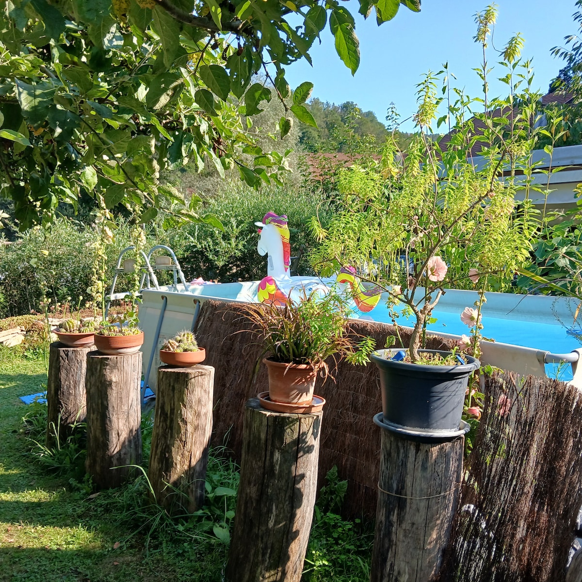 C’est une petite maison oú il fait bon se retrouver, elle apporte du bonheur... Elle est située dans la vallée du Dessoubre, rivière à truite, bon plan pour les pêcheurs et les amoureux de la nature. Dans un cadre de verdure à 360 degrés, le calme y est idéal pour s’y RESSOURCER... La maison surplombe la vallée, sans aucun vis à vis, vous pourrez prendre un bain ou une douche directement sur la terrasse extérieure. (En été) C’est un exemple d’un des vrais petits BONHEURS...
