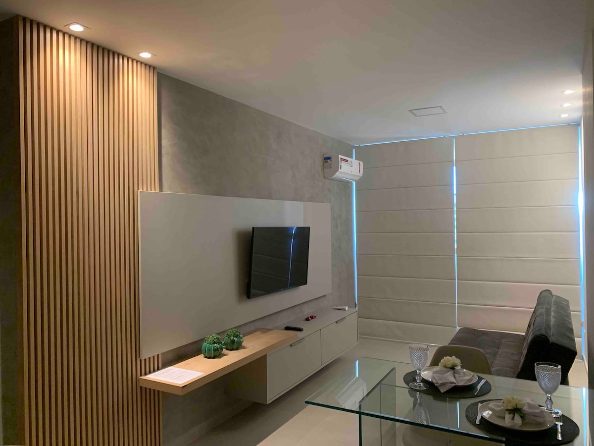 A hálószobában és a nappaliban található légkondicionálóval, a kanapéággyal és a teljesen felszerelt konyhával minden megvan, amire szükséged van, hogy a lehető legjobban élvezd Maceiót! 🌴 Az épület kiváló elhelyezkedésű, és teljes kikapcsolódási lehetőséget kínál: úszómedence, edzőterem, közös munkaterület, 24 órás ügyintéző, játszószoba és játékszoba, amelyek ideálisak a pihenéshez, edzéshez vagy a nyugodt munkavégzéshez. És hogy még jobb legyen az élmény, Maceió egyik új képeslapja mellett leszel: a Ponta Verde óriáskerék mellett.