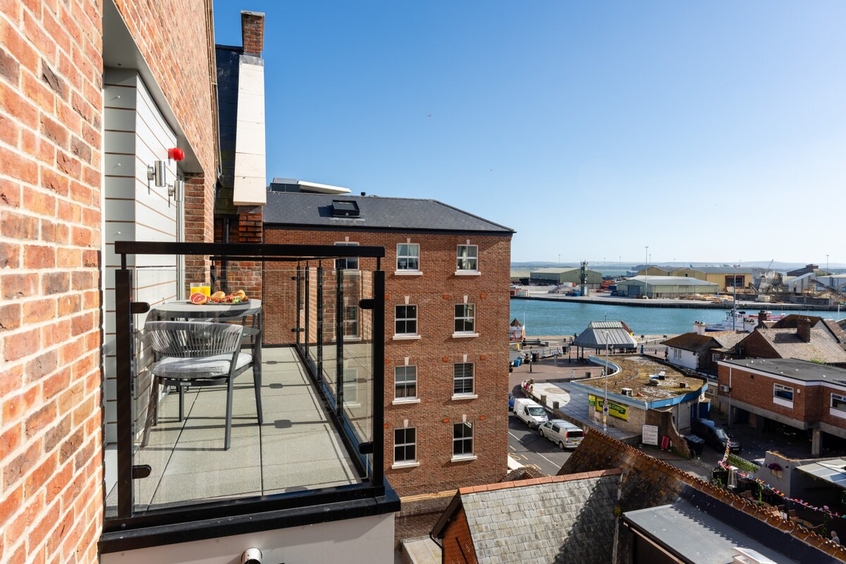 Located directly on the harbour, 2 Rowes Warehouse (2RW) is the most distinctive of a run of historic buildings that give the Quay its charm. Poole Quay offers a fantastic location for a weekend away or an annual holiday as the gateway to the Jurassic Coast. This spacious, newly refurbished two bedroom, two bathroom flat is the ideal place to stay. Our reviews say it all...everyone has been delighted with the apartment and that view!