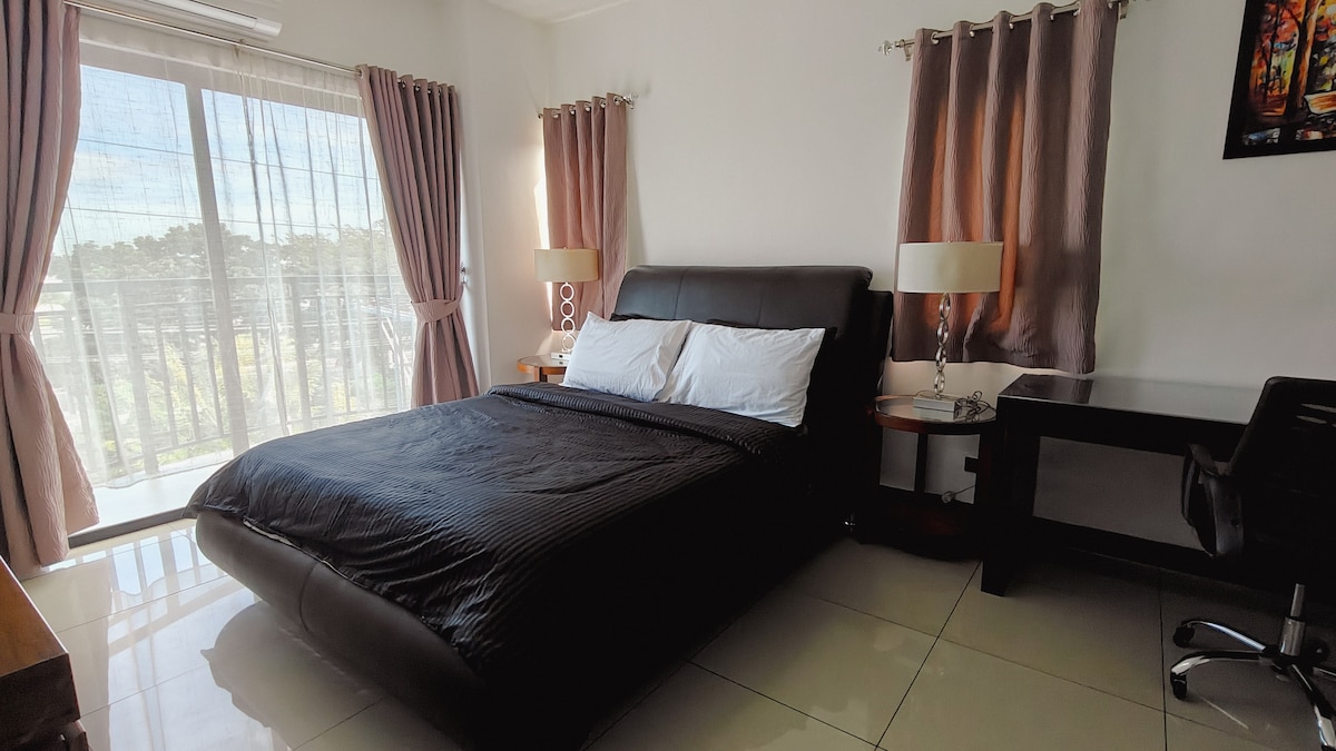A tetőtéri medence nyitva van. Pihenj és élvezd a lélegzetelállító kilátást a hegyekre a napfelkeltétől az Arayat-hegy naplementéjéig a Pinatubo-hegyen. A szálláshelyünk éjjel-nappali biztonsági szolgálattal rendelkezik a Clark Airport, 7-11, SM Clark, Restos & Fields Ave közelében. Tiszta, kényelmes, csendes, queen méretű ággyal, kanapéval, konyhával, gyors Wi-Fi-vel, intelligens HD TV-vel, Netflix-szel, Youtube-val, szobaszéfpel, ivóvízzel, zsebkendővel. Ideális pároknak, szólóknak, üzleti utazóknak. Ingyenes utcai parkolás és tömegközlekedés áll rendelkezésre az ajtónál. Imádni fogod!