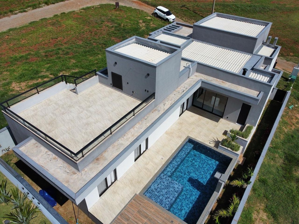 Casa de campo nova em condomínio fechado com trocador de calor e piscina aquecida o ano inteiro(31 a 34 graus) São 3 dormitórios sendo os 03 suítes e com ar condicionado, churrasqueira, forno a lenha Disponível apenas para famílias, não aceitamos eventos. condomínio fechado com segurança 24h, lagos para pesca, ampla área verde. Wi-fi de fibra ótica disponível, perfeita para o seu home office. Localizado no km 157 da Castelo Branco, fácil acesso e é próximo ao parque aquático Castelo Park"