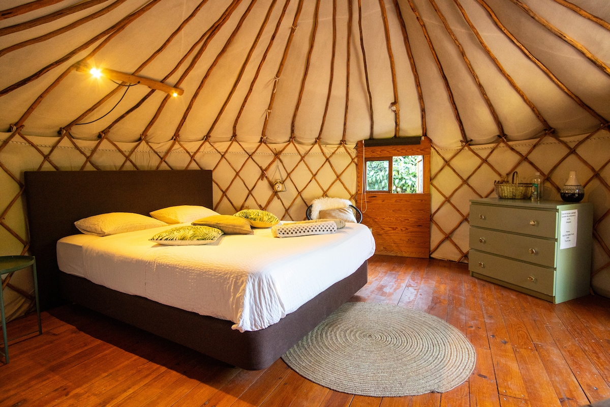 Ez a kétszemélyes romantikus jurta-bérlés öt percre található a portugáliai Silves városától, és egy gyönyörű narancsligetben rejtőzik. A jurta franciaággyal és gyönyörű tetőablakokkal rendelkezik, hogy valóban újra kapcsolódjon a természethez, valamint légkondicionálás a kissé melegebb nyári éjszakákhoz. A vendégek a kényelmes függőágyban töltött órákat is élvezhetik, vagy este pihenhetnek, miközben a nagy teraszon nézik a csillagokat egy hosszú nap után.