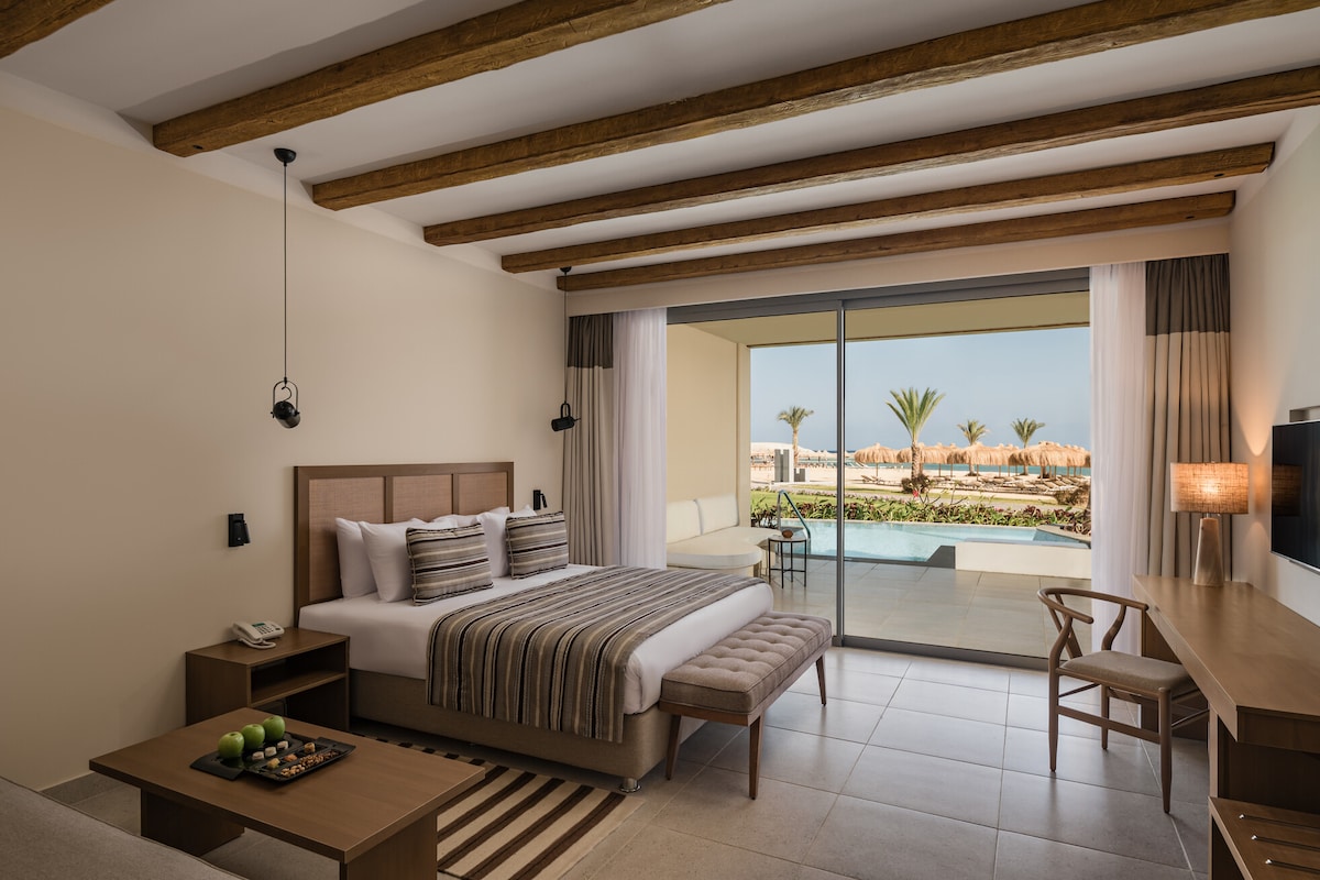 Indulge in an adults-only haven by the Red Sea, where coral reefs dazzle, five pools shimmer, and swim-up rooms offer private access. Enjoy starlit dinners, garden views, and nearby adventures at Abu Dabbab Bay or Port Ghalib. A perfect mix of serenity, luxury, and discovery awaits at this coastal escape.