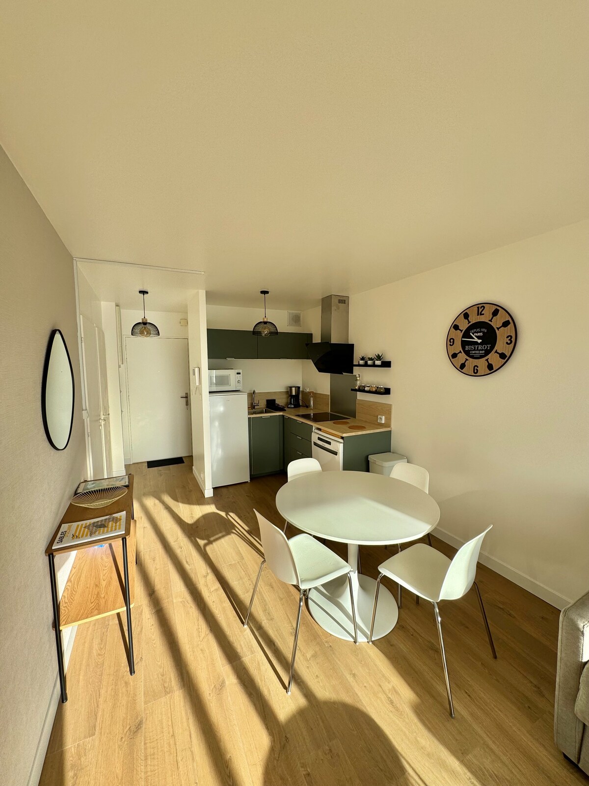 Üdvözlünk Les Sablesben! Szép, 32 m2-es stúdió egy luxuslakás 7. emeletén, a töltés szívében. Gyönyörű kilátás nyílik az óceánra, az öböl jobb oldalára és a csatorna bejáratára. A strand és a töltés egy rövid sétával elérhető! A kényelmed érdekében ingyenes parkolást biztosítunk neked a júniusi/júliusi/augusztusi nyári szezonban. Parkolás a szálláshelytől 10 perc sétára. Mindent úgy terveztünk, hogy a lehető legjobb körülmények között tudjon fogadni. Hamarosan találkozunk!