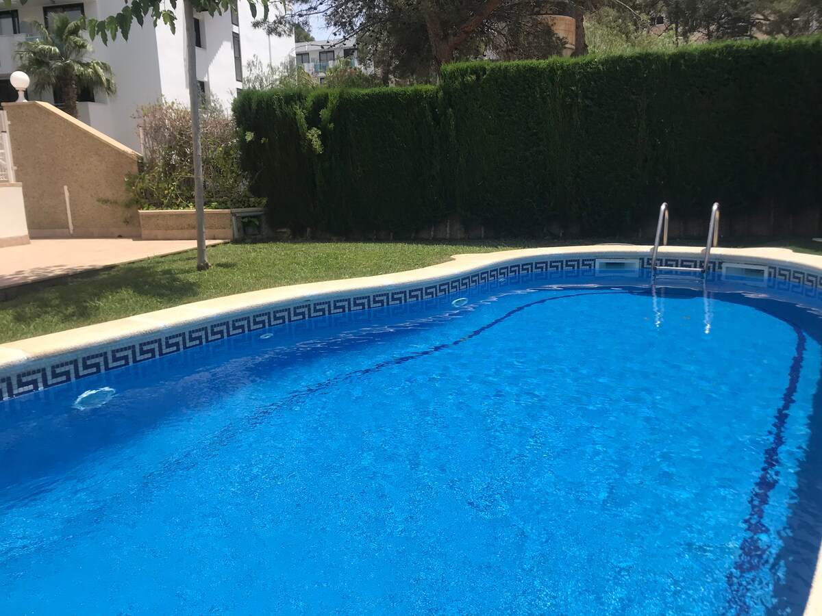 100 m2-es lakás a FÖLDSZINTI, 50 m2-es biztonságos teraszon, amely ideális a gyerekeknek, csendes terület 600 méterre a strandtól, Salou központjától, Portaventurától, 2 úszómedencével, beleértve 1 fedett hammam jacuzzit, amely télen nyitva tart. PARKOLÁS - PRIVÁT WIFI AZ ÁRBAN. 3 hálószoba intelligens TV-vel felszerelt hálószobával 2 fürdőszoba, az egyik fürdőkáddal, a másik pedig zuhanyzóval. Nagy képernyős Smart TV étkező . Mosógéppel és mosogatógéphez való teáskannával felszerelt konyha