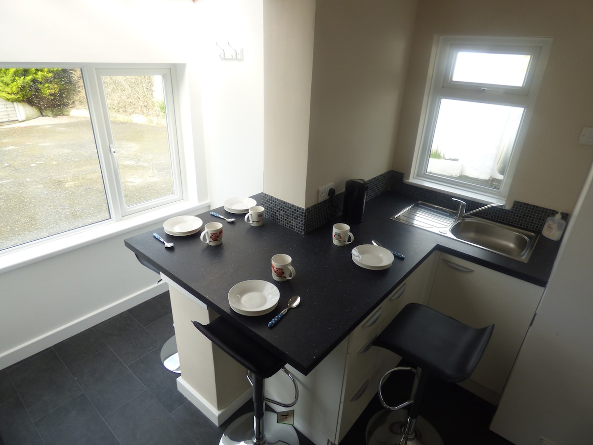 'The Annex' is a two minute walk from Porthleven village in a secluded location. The Cornish fishing village is bustling with activity. It is a 'foodies heaven' with a range of eateries to cater for all tastes and budgets. There are 4 pubs in the village all within a 5 minute walk. Lovely art galleries. Renovated to a very high standard. King Size bed with modern fitted kitchen. Fridge, microwave, toaster and kettle. Ensuite shower room. Outside seating area which is a real sun trap.