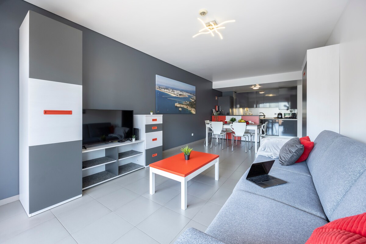 Lenyűgöző, modern, egy hálószobás lakás, ahonnan lélegzetelállító kilátás nyílik a tengerpartra és a tenger hangjára ezen a látványos, híres strandon, a Praia da Rochán. Ingyenes Wi-Fi, kábel-TV, légkondi, teljesen felszerelt konyha és erkély a szabadtéri étkezéshez. Praia da Rocha egy kis erőddel, Santa Catarinával rendelkezik, amely a kikötő és a modern kikötő torkolatát őrzi, ahonnan a sétány számos étteremmel, strandbárral és éjszakai élettel terjed ki, miközben megőrzi lenyűgöző szépségét.