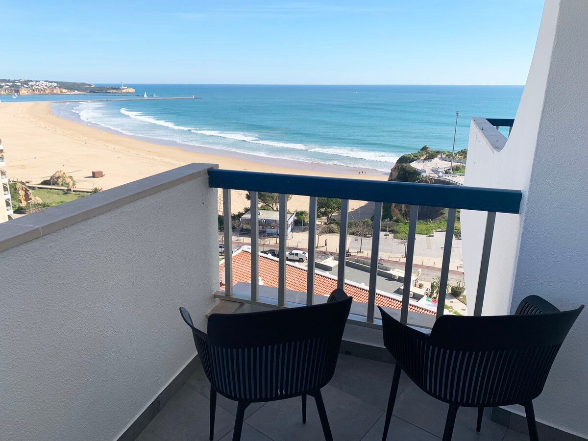 Elevate your beach vacation with this stunning studio located in the heart of Praia da Rocha. Situated on the 16th floor, the apartment offers beautiful sea views and a private balcony. This rental is the perfect retreat for beach lovers and sun seekers. Relax and unwind in style, just steps from the sand and the beautiful Algarve sunshine. Available for guests looking for a longer stay during the off-season with a coworking space in the building.