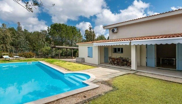 Amikor megérkezel a villába, rájössz, hogy teljesen elmerül a mediterrán bozótban, egy szép tóval a közelben, néhány helyi vadállattal, különösen madarakkal és kacsákkal. A nagy kert (több mint 1000 négyzetméter) jól karbantartott pázsittal rendelkezik, amely teljesen beborítja. A medence (9x5m) elég nagy, de nagyon biztonságos, mivel a maximális mélysége körülbelül 1m. Egy gyönyörű és nagy verandát borít a villa három oldalát, és nyáron gyönyörű árnyékot biztosít.