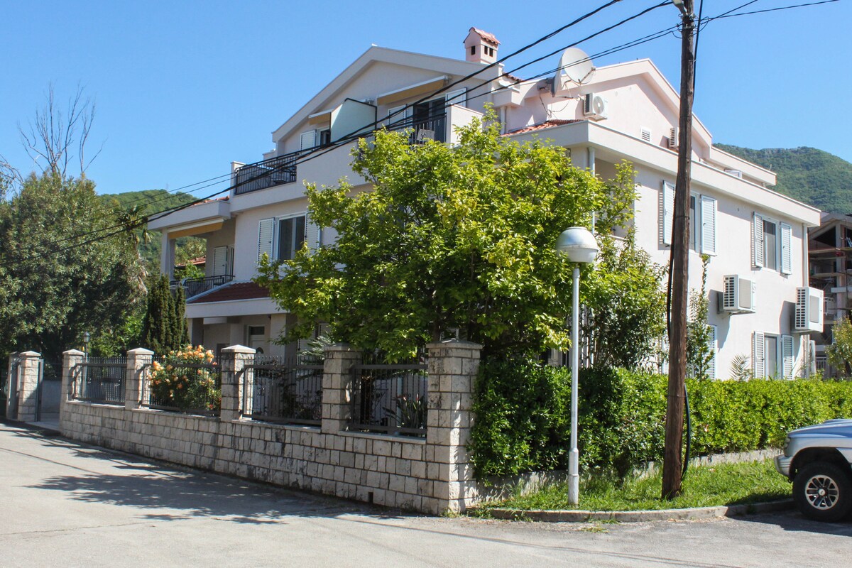 Helyezd magad kényelembe egy stílusos kanapén, amelyet átitat ennek a világos lakásnak az elegáns eleganciája, amelyben herringbone fapadló, trendi bútorok és ragyogó kék darabok találhatók. Vedd az irányt az erkély felé, és élvezd a varázslatos tengeri és hegyi kilátást egy ódivatú bisztróasztalról. Nagy és kényelmes nappali intelligens tévével, gyors internettel, étkezőasztallal és székekkel, valamint a Kotor-öbölre néző erkélysel. Teljesen felszerelt konyha (hűtőszekrény, mosogatógép, multifunkciós mikrohullámú sütő, főzőlap, sütő, kenyérpirító, gyümölcslé, vízforraló, kávéfőző), valamint minden egyéb szükséges eszköz, amire szükséged van, Első hálószoba king méretű ággyal és egy másik hálószoba két külön ággyal, amelyeket össze lehet rakni. Fürdőszoba zuhanyzóval, hajszárítóval és mosógéppel. Az apartman légkondicionálóval van felszerelve mind a hűtéshez, mind a fűtéshez. A lakóépület 3. emeletén található, lift nélkül. A tulajdonos ingatlanában vagy közvetlenül a lakóépület előtt 1 percnyi parkolóhely található. Ha bármire szükséged van, ami jobbá teheti a szálláshelyen töltött idődet, nyugodtan kérdezz, és minden tőlem telhetőt megteszek, hogy segítsek :) Azt szeretem a legjobban a vendégfogadásban, hogy kapcsolatba lépek olyan vendégekkel, akikkel én és a családom is osztozunk a szenvedélyünkkel - utazom, és nagyszerű helyeket és kultúrákat fedezünk fel. Alig várom, hogy hamarosan üdvözölhesselek! Az apartman nagyon közel van a központhoz és az óvároshoz, mindössze pár percre a történelmi helyszínektől, nevezetességektől, múzeumoktól és festői túraútvonalaktól. A vízparti éttermek, a bájos kávézók és az üzletek egy rövid sétára találhatók. A legközelebbi strand mindössze 100 méterre az apartmantól. Mindezt figyelembe véve akár úgy is dönthetsz, hogy az erkélyről csodálatos kilátás nyílik a tengerre egy pohár bor mellett. 10-20 perc taxival a repülőtértől, 5 perc taxival a buszpályaudvarig. Tömegközlekedés 100m. Óváros, gyalog, 5 perc alatt Az épület harmadik emeletén nincs lift!