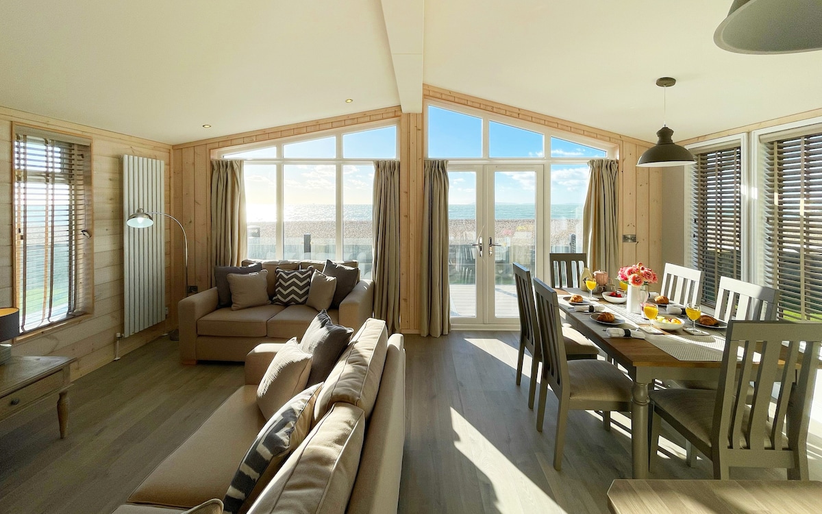 Sunset Lodge is a Prestige Homeseeker, Casa Di Lusso lodge (Italian for “House of Luxury”). A completely unique & luxurious way to experience Seal Bay Resort. Panoramic views of the whole of Bracklesham Bay, from the open Solent to the left, IOW, Portsmouth round to the Wittering’s on the right. Superior luxury lodge gives the wow factor in design, with a stunning interior and is beautifully equipped throughout, providing the ultimate holiday experience at Seal Bay Resort, Selsey.