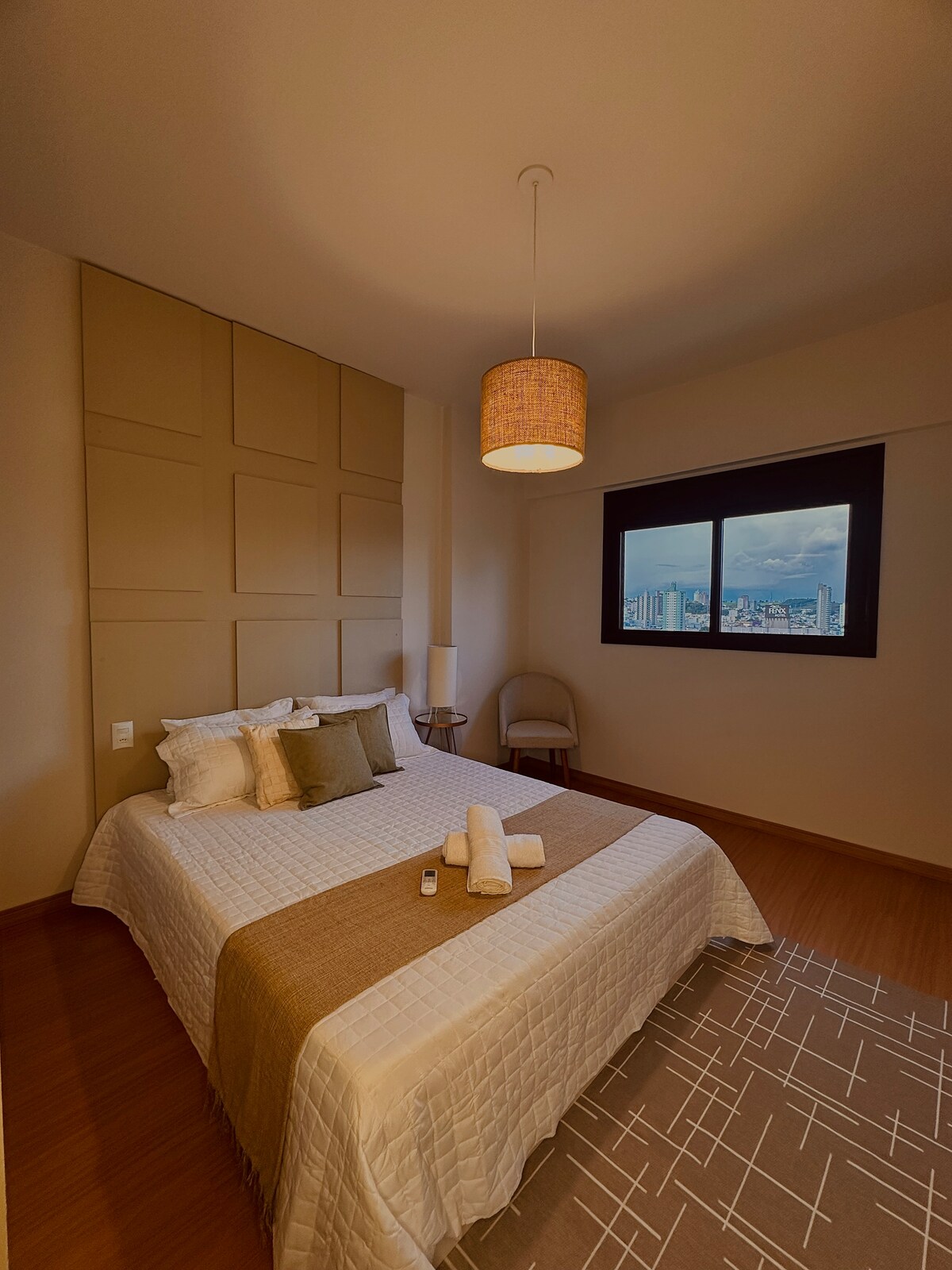 Apartamento no centro de Pouso Alegre, localizado no 25º andar, com vista panorâmica da cidade e das serras da região. Ideal para viagem a trabalho, estadia corporativa ou para quem busca conforto com piscina e 2 vagas de garagem. O Skyline 25 combina localização estratégica, estrutura completa e padrão elevado em um dos edifícios mais altos da cidade.