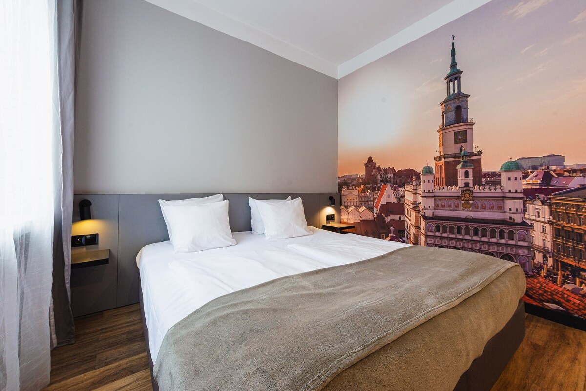 ✨ Cozy Single Room by Old Market 150m 🏡 About this place Welcome to our comfortable, stylish single room, perfect for solo travelers and business guests. The room combines modern design with full functionality, ensuring a relaxing stay in the heart of Poznań. Highlights: self check-in, monitored parking, and on-site restaurant.