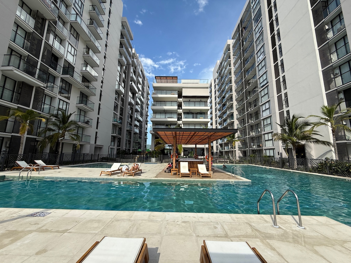Disfruta un apartamento de lujo en la zona preferencial del Rodadero a tan sólo 15 minutos del aeropuerto internacional Simón Bolívar y a 10 minutos a pie del Rodadero, cuenta con salida privada a la playa, club de playa, zonas verdes con senderos ecológicos, terraza panorámica con zonas húmedas (Jacuzzis, bares, varias piscinas para adultos y para niños) entre otras amenidades como cancha de microfutbol, gimnasio, ping-pong, entre otras de estilo Resort para su disfrute.