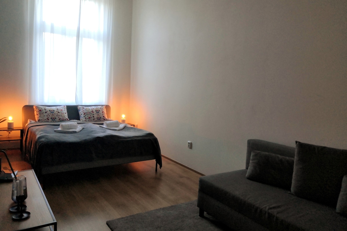 Ismerd meg a híres Nedvěd Architekti építészeti stúdió által tervezett vadonatúj, stílusos, teljesen berendezett lakásokat, ahol mindent megtalálsz a kényelmes ágyaktól a törölközőkig és kávéscsészékig. A gondosan felújított épület megőrizte a történelem legjavát, és mindent megadott, amire a modern lakhatásnak szüksége van. Helyezd magad kényelembe! • 5 percre Prága szívétől • 80 méterre a legközelebbi kávézótól • 1 megálló a főpályaudvartól • Metrótól és villamostól pár lépésre
