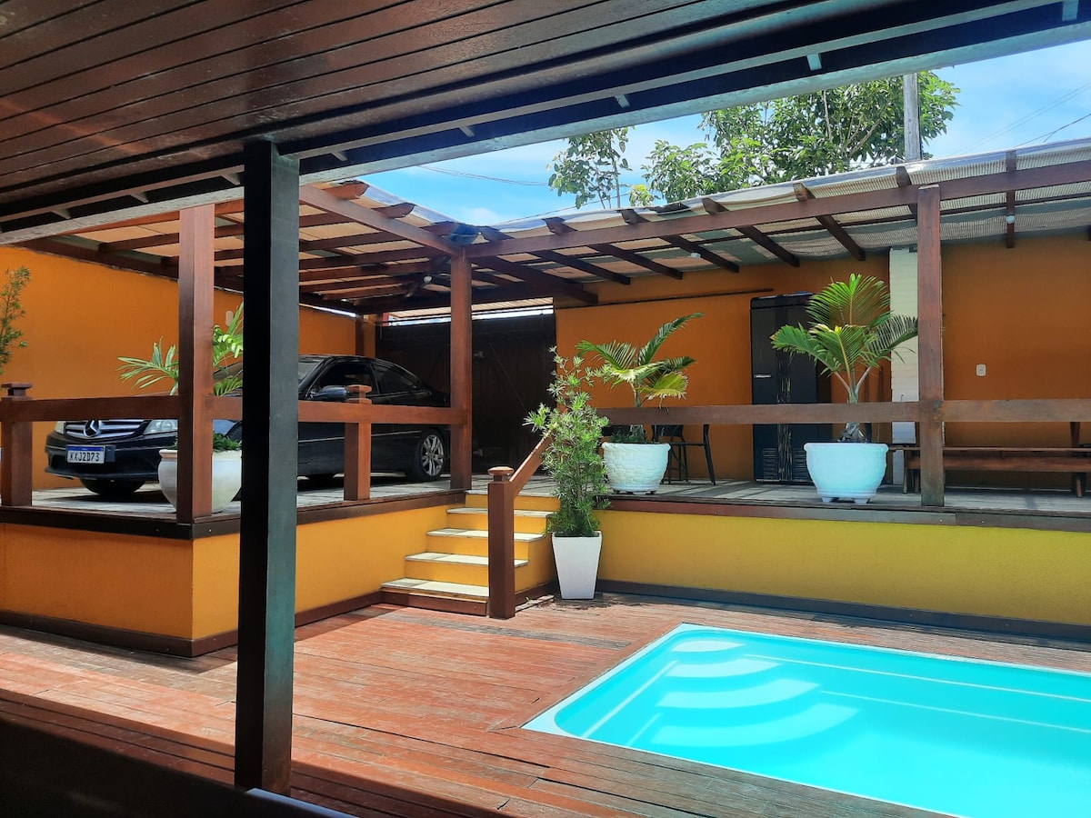 Incredible experience with luxury and relax in an excellent location, 2 minutes walk from the sea. There are 6 suites that comfortably accommodate 14 people. The house has two floors and offers every comfort for rest and leisure! Living room dining room integrated with a full kitchen. Its outdoor area has a swimming pool, sauna, garden and gourmet area with barbecue, ideal for gathering family and friends. Air conditioning, good Wi-Fi signal and Smart TV in all rooms. Accepts PETS.