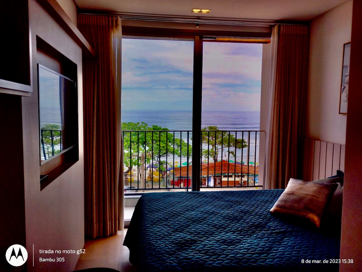 Az apartman a Praia Grande előtt található. Erkéllyel rendelkezik, kilátással a tengerre. Van egy lakosztálya légkondicionálóval és 43 hüvelykes tévével. A nappaliban szintén van egy 43 hüvelykes tévé és egy kanapéágy, amely dupla ággyá alakítható, és egy sötétítő függöny, amely a nappalit egy másik hálószobává alakítja. 100 MB saját internet. Kényelmes ínyenc grill. A közös terület fűtött úszómedencét, száraz és gőzszaunát, pezsgőfürdőt, mozit és játékkönyvtárat tartalmaz. Megjegyzés: a fűtött medence és a pezsgőfürdő karbantartás miatt zárva van.
