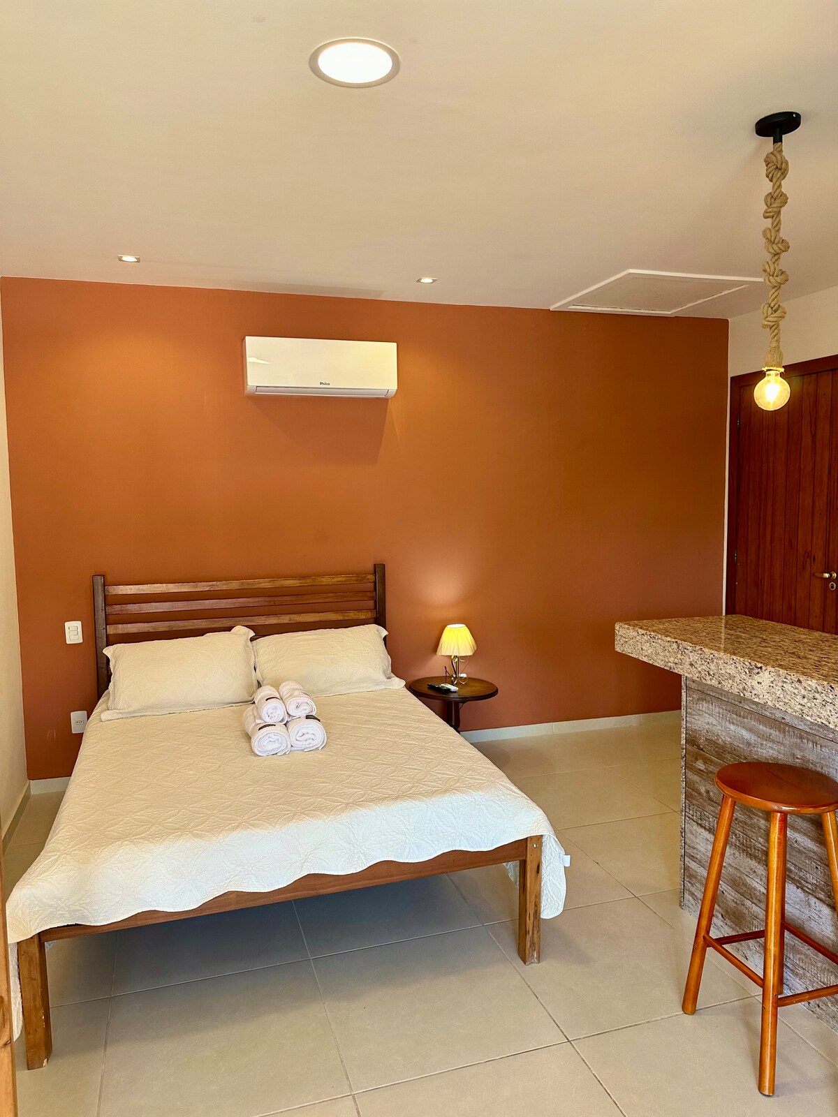 Quer passar alguns dias em Búzios? Próximo ao Centro Gastronômico Porto da Barra? Nós temos o que você precisa. Loft com suíte, sala e cozinha com acomodações para até 3 pessoas  com uma cama de casal e um sofá cama. ATENÇÃO! Taxa extra para o 3° hóspede.