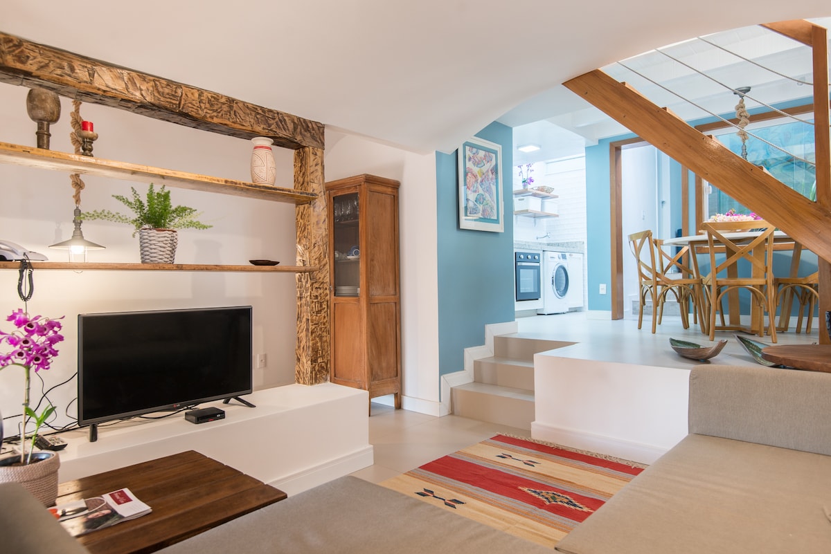 Jól felszerelt, kényelemmel egy zárt közösségben, ahol garázs, csendes hely és jó elhelyezkedés található. Nagy félemeletes szoba otthoni irodával, ventilátorral, légkondicionálóval és intelligens TV-vel. Nappali kanapéval és TV-vel , ventilátorral és készülékekkel felszerelt konyhával. Mosókonyhával és ipari stílusú fürdőszobával rendelkezik. Saját, szabadtéri pezsgőfürdő, grillező és függőágy található a szabadban. Mindössze 10 perc séta után megérkezel Rua das Pedrasba.