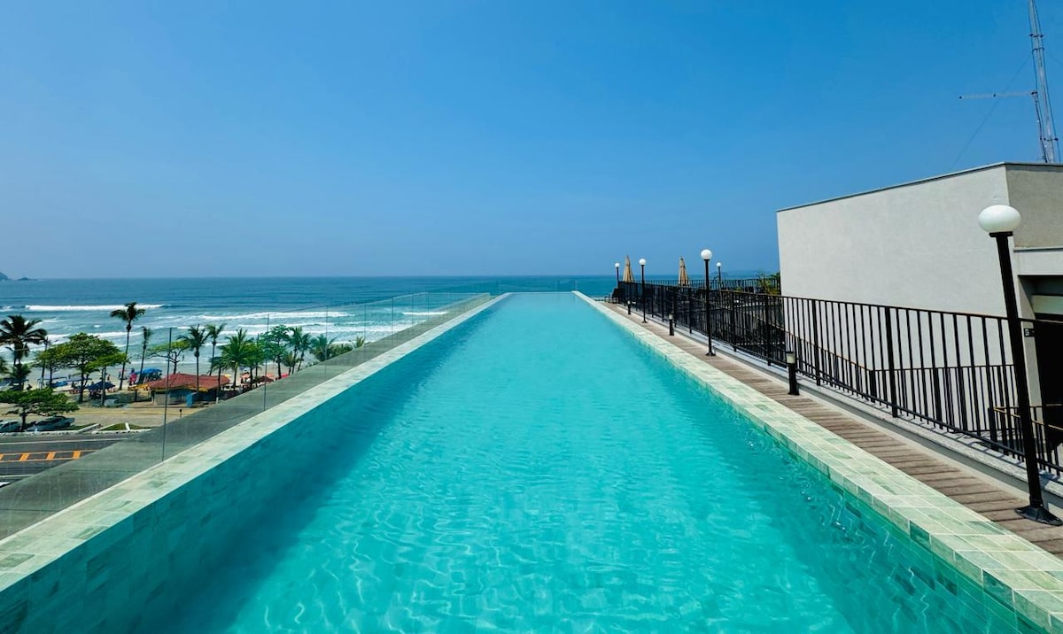 Az apartman a Praia Grande előtt található. Erkéllyel rendelkezik, kilátással a tengerre. Van egy lakosztálya légkondicionálóval és 43 hüvelykes tévével. A nappaliban szintén van egy 43 hüvelykes tévé és egy kanapéágy, amely dupla ággyá alakítható, és egy sötétítő függöny, amely a nappalit egy másik hálószobává alakítja. 100 MB saját internet. Kényelmes ínyenc grill. A közös terület fűtött úszómedencét, száraz és gőzszaunát, pezsgőfürdőt, mozit és játékkönyvtárat tartalmaz. Megjegyzés: a fűtött medence és a pezsgőfürdő karbantartás miatt zárva van.