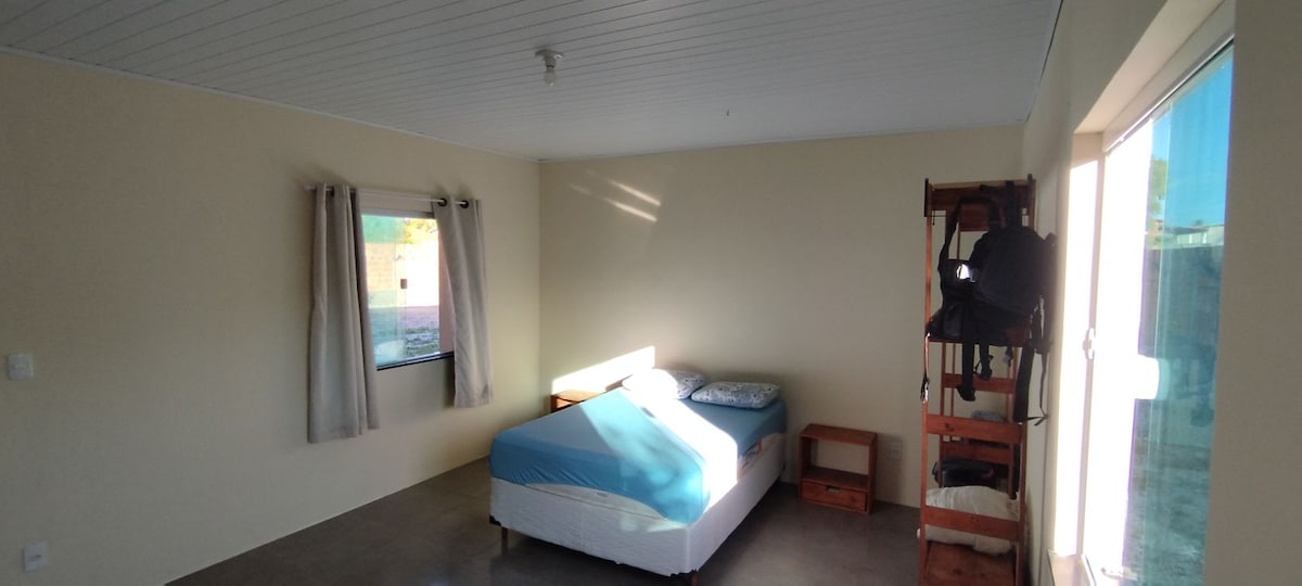Pihenj a földszinten, ami rendkívül hangulatos és csendes. 3/4 saját fürdőszobával, queen méretű ágyakkal, légkondicionálóval és TV-vel minden szobában, meleg zuhanyzóval, hajszárítóval, elektromos vasalóval, elsősegélykészlettel, Wi-Fi-vel és kiváló konyhával minden étkezés elkészítéséhez. Legfeljebb 6 főnek, nagyon jól szellőzik, árnyékos oldal. Közel mindenhez, strandokhoz, piacterekhez, piacokhoz, éttermekhez, pizzázóhoz és sok minden máshoz. Nagyon jó helyen! Canto Verde, hogy könnyedséget vigyen az otthonba! Egyedi hely! Felejthetetlen hely!