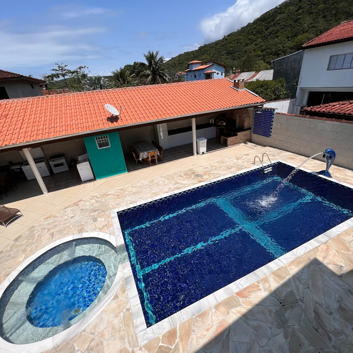 Portal Patrimoniun - Ház saját medencével, 300 méterre a strandtól Massaguaçu barbecue,sör, hűtő, napernyő, 24 órás biztonság, WI-FI 500 MB, Légkondicionálás a hálószobákban, nagy erkély, zuhanyzó, kerti gyep. 2 hálószoba, 2 fürdőszoba, garázs 2 jármű számára, ÉGI készülék, ventilátorok , elülső gyep, járda kerekesszék számára. Függőágy az erkélyen való pihenéshez, háziállatok is jöhetnek. Pompás táj a Serra do Mar számára. Kapcsolat a természettel stb.